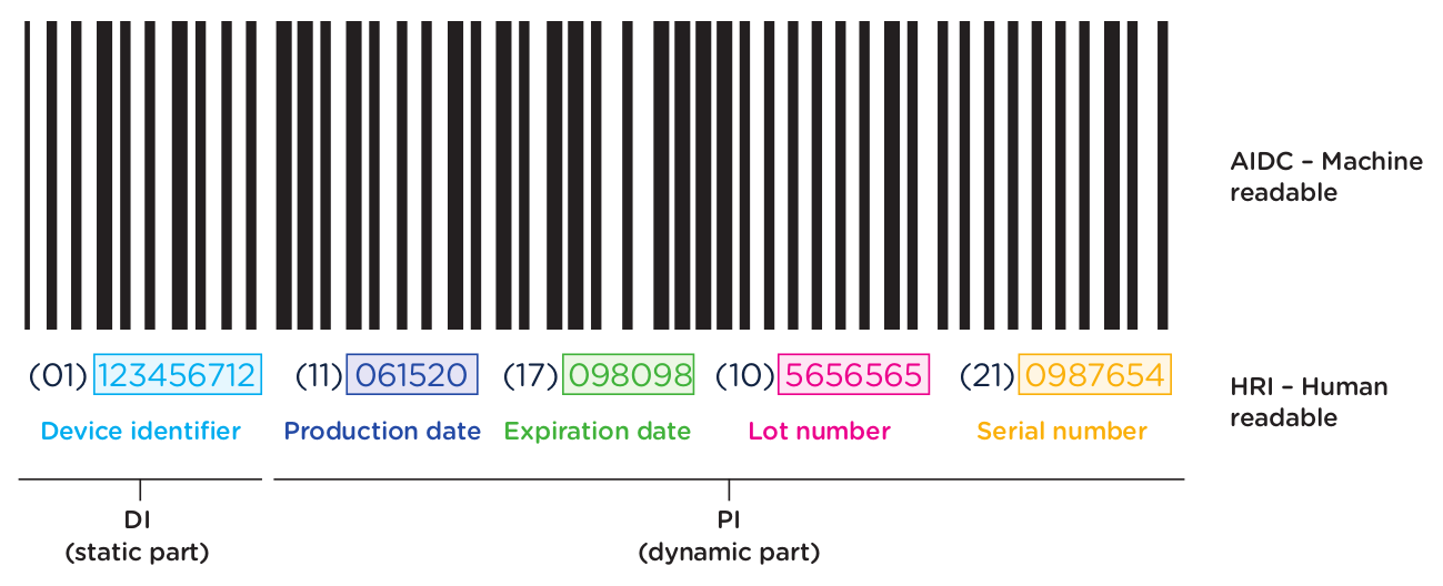 Meanwhile, the UDI-PI (Production Identifier PI, also referred to as "dynamic") contains manufacturing information (including serial number, lot/batch number, software identification, and manufacturing or expiry date or both types of dates.)